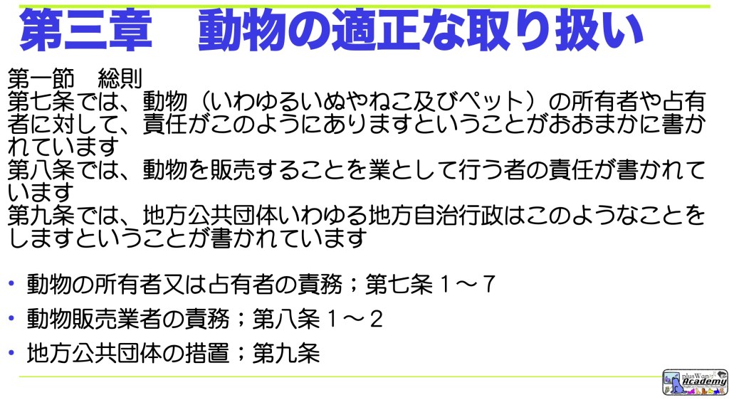 Global.plusWanは、「動物の愛護及び管理に関する法律」について法律家やその方面の専門家ではない視点から、そして難しく面倒くさいものをできるだけ日々の生活に活かしていけるようにしていければ幸いだなぁと思いながら、少しずつ少しずつ説明していきます。