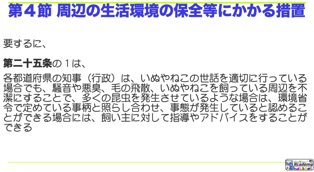 第4節は、飼い主は周辺環境への配慮が必要ですよ。ということ。