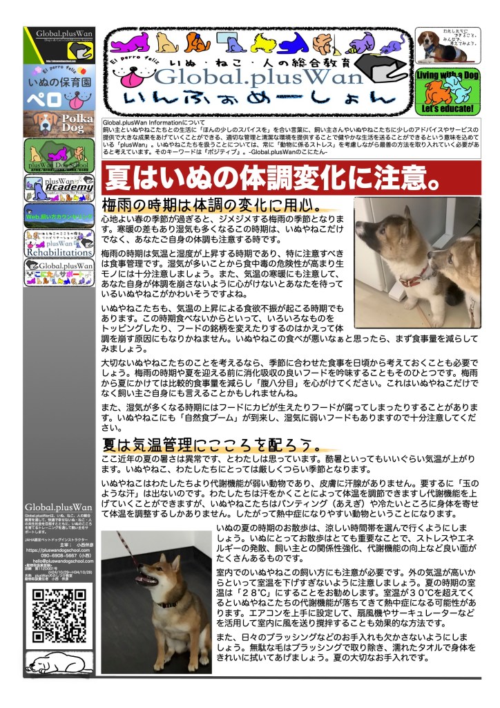ここ近年の夏の暑さは異常です、とわたしは思っています。酷暑といってもいいぐらい気温が上がります。いぬやねこ、わたしたちにとっては厳しくつらい季節となります。