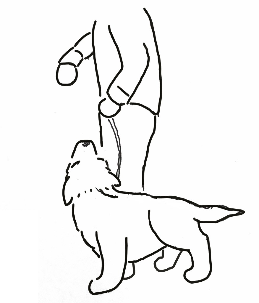 ・飼い主の手を咥える(噛む)、ズボンの裾を引っ張る