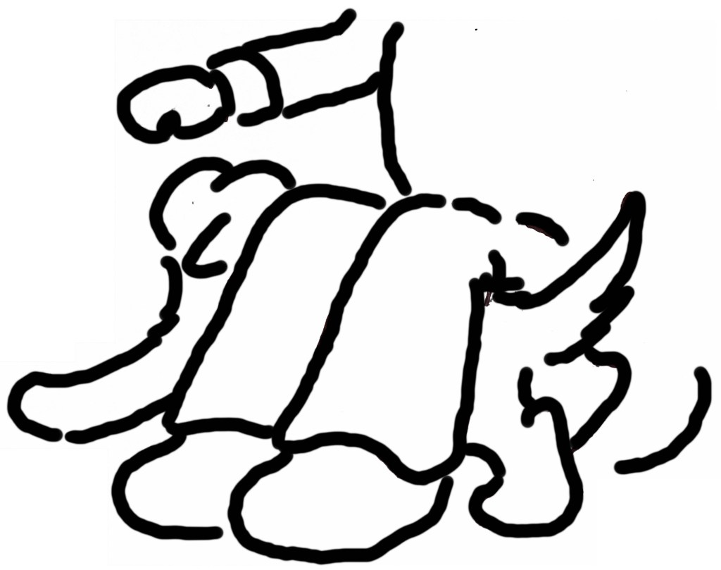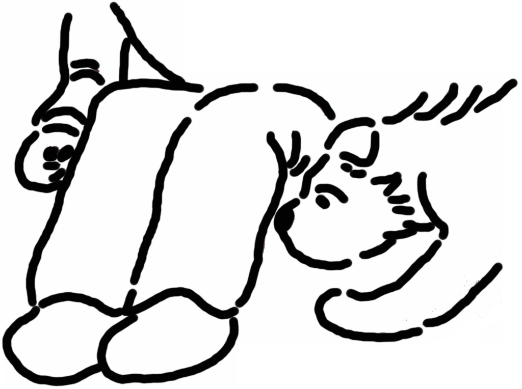 この方法はいぬとのコミュニケーションを図るうえで有効で、いぬも喜んで楽しそうにやってくれます。まず床にお尻をつけて足を投げ出し、「く」の字を寝かしたように足で山をつくるとその下がトンネルのようになります。そこをフードで誘導していぬを潜らせます。トンネルを通り越したらフードを与え褒め言葉を言いながら頭を撫でましょう。