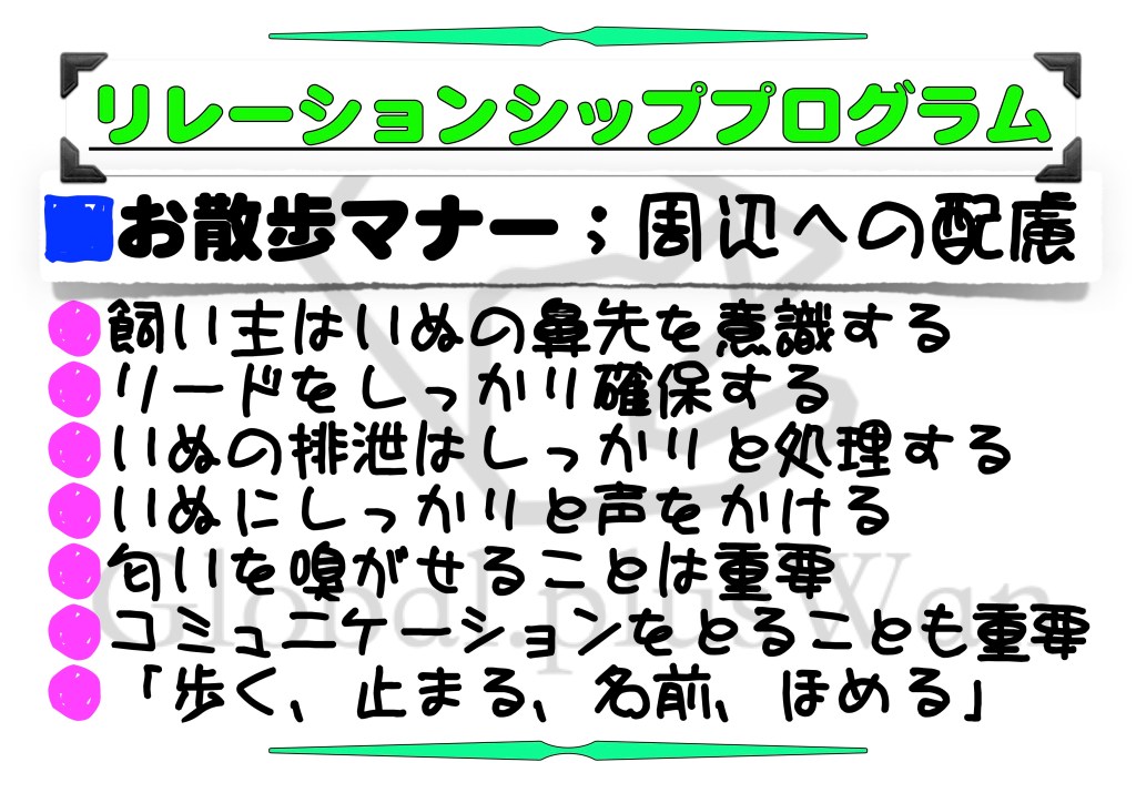 いぬのコントロールとアイコンタクトの大切さと、繰り返していくという根気が必要です。